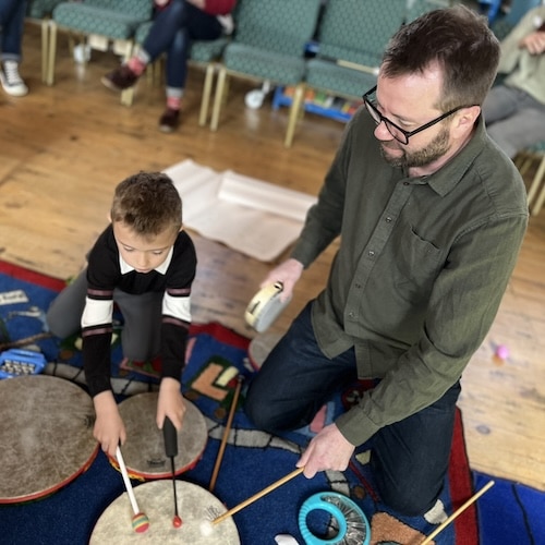 - Hands-on experimentation with a range of instruments, from shakers to strings and percussion.
