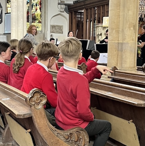 The workshops took place in familiar local venues such as Long Melford Library, Acton Village Hall, and care homes, making creative activity accessible and inviting. The project culminated in a moving concert at Holy Trinity Church in Long Melford, featuring nine Sinfonia Viva musicians alongside participants of all ages, including children from Long Melford Primary School – a true celebration of community creativity and connection.